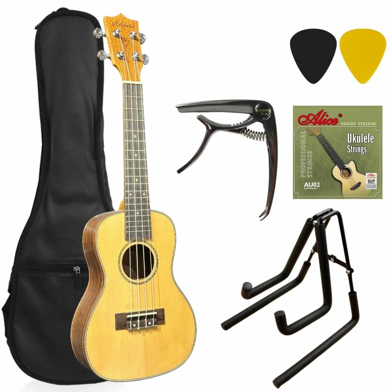 Phụ kiện đa dạng: Bao đàn, sách hướng dẫn, pick và phiếu giảm giá hấp dẫn.
